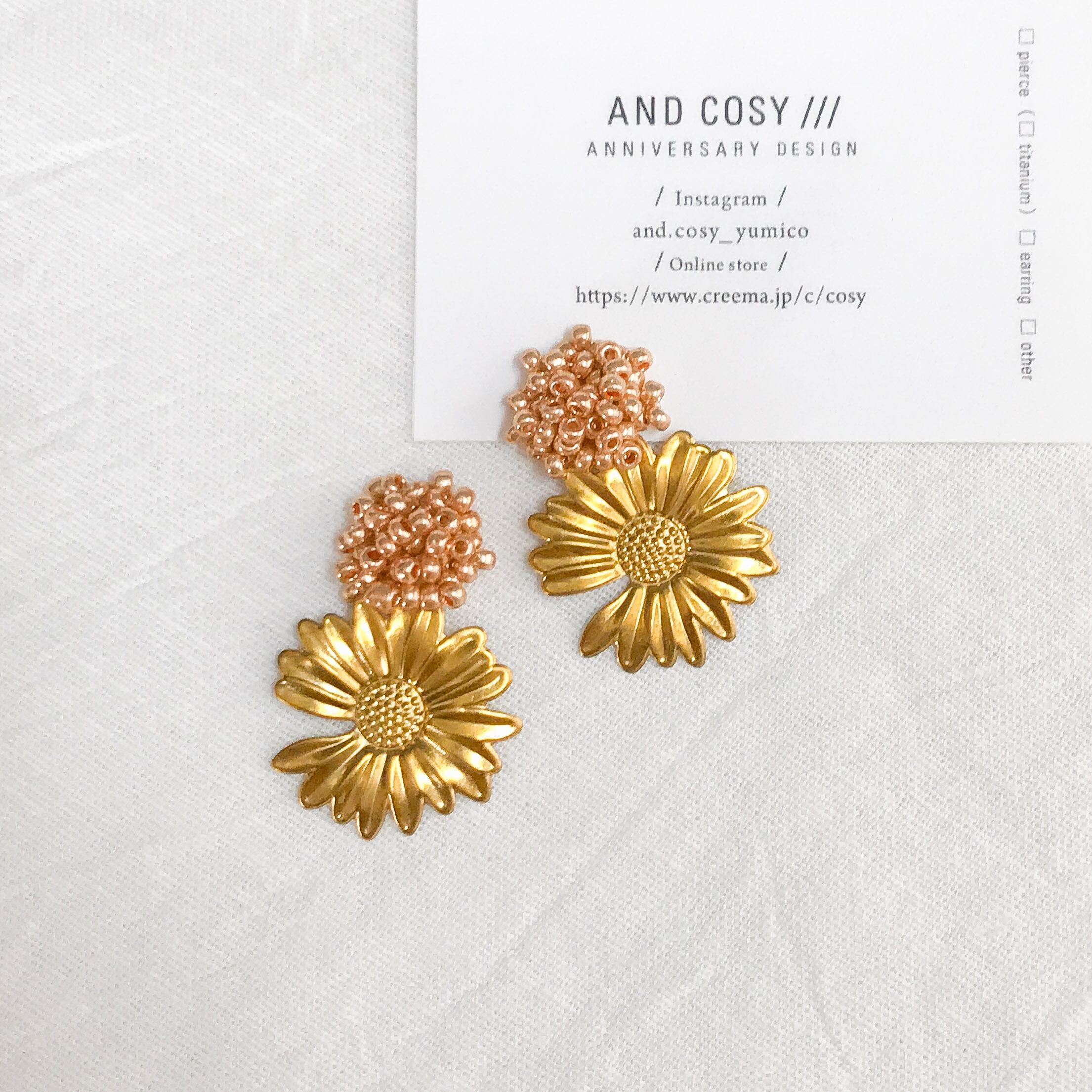 人気のtricoシリーズのアンティーク風フラワーピアスです