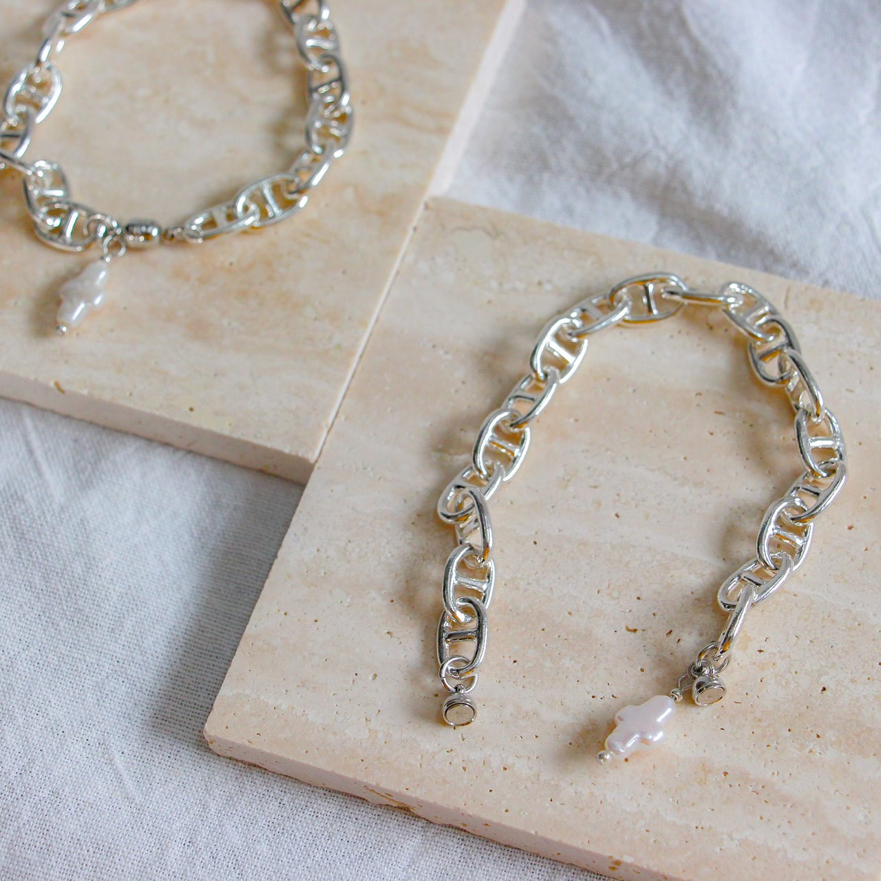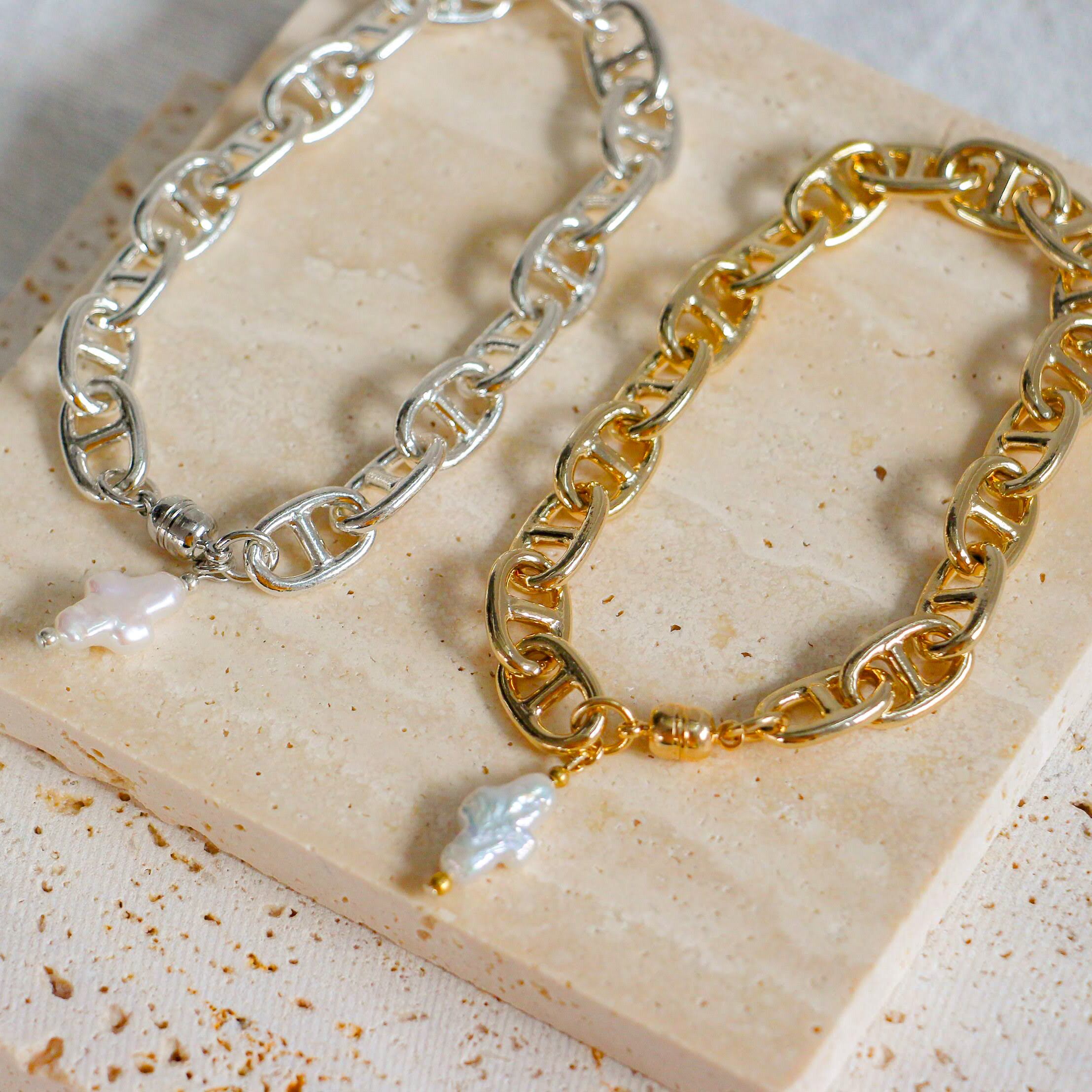 cross perl design chain[ゴールド・ホワイトシルバー]
